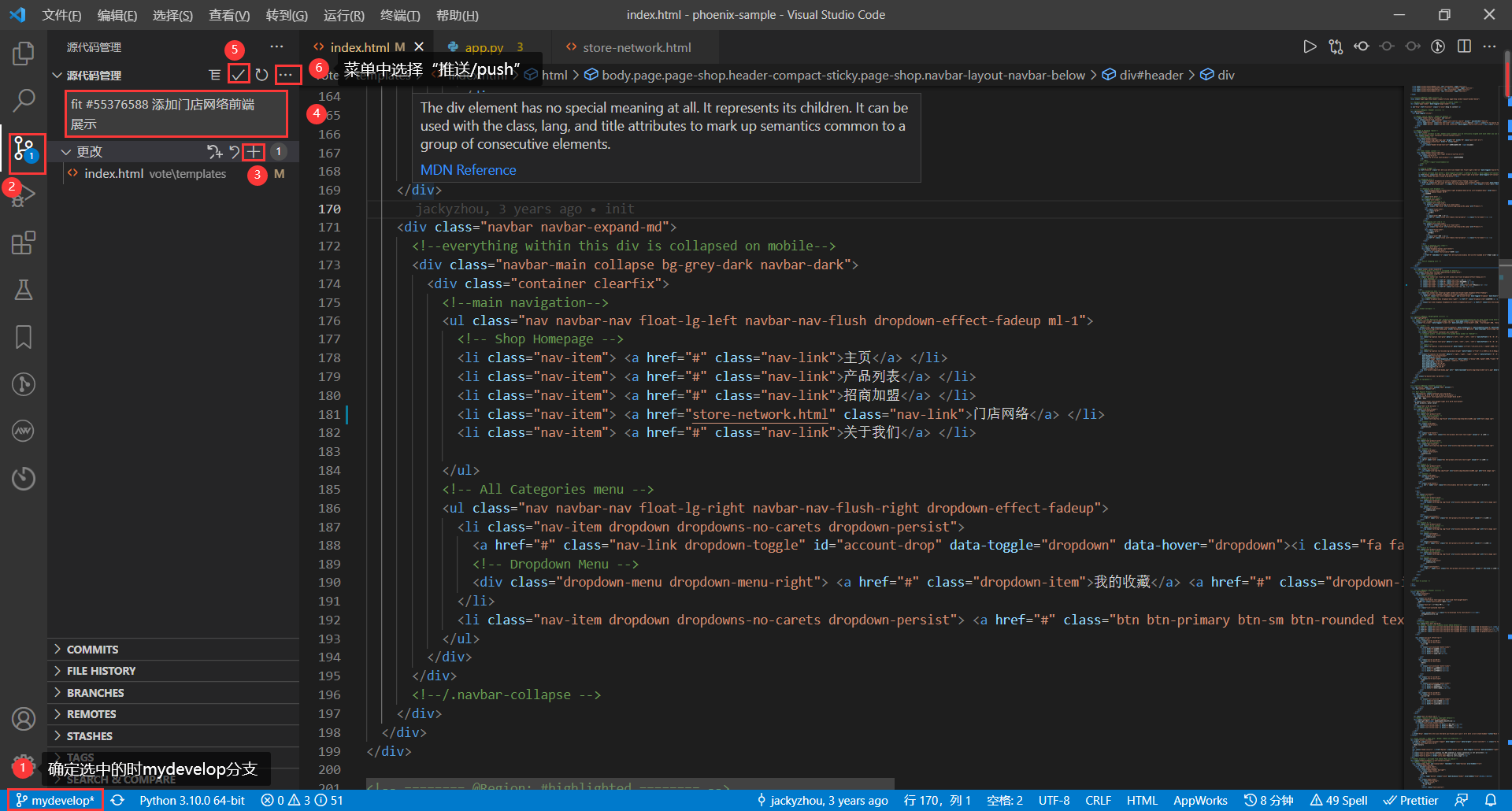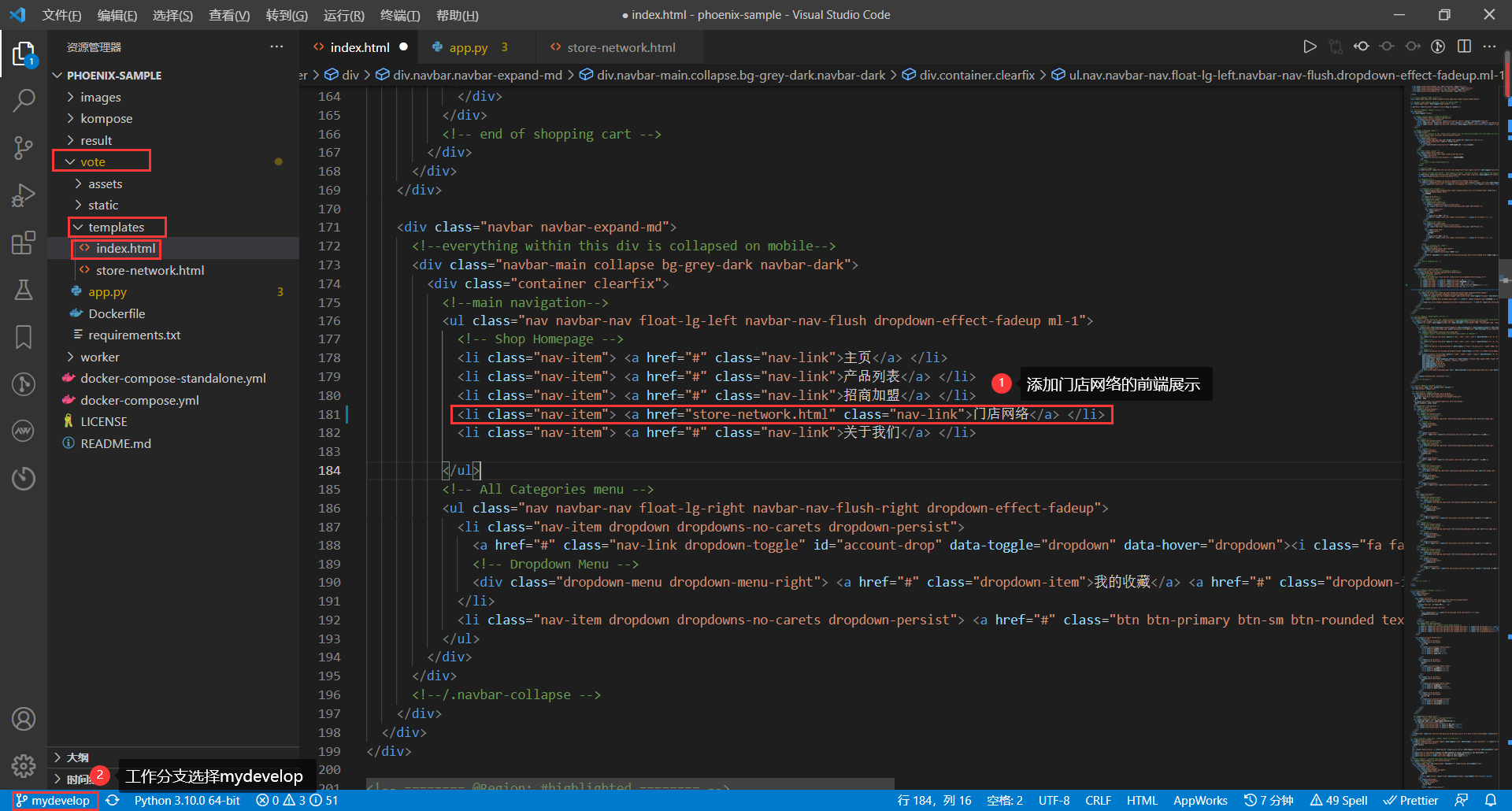 (1)在index.html中添加门店网络的前端展示: