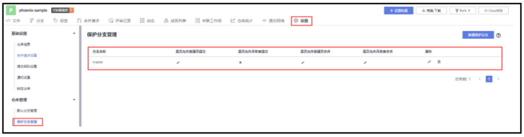 (1)master分支用于部署发布。并新建保护分支,将master设置为保护分支,权限如下: