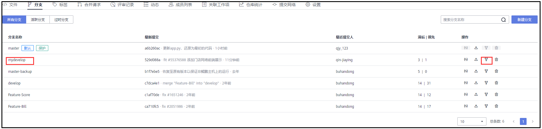 (3)创建mydevelop-XX分支进行开发。