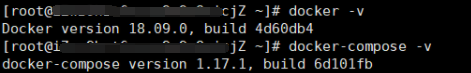 比如:在服务器终端分别输入以下两条指令,可以显示docker版本和docker-compose版本