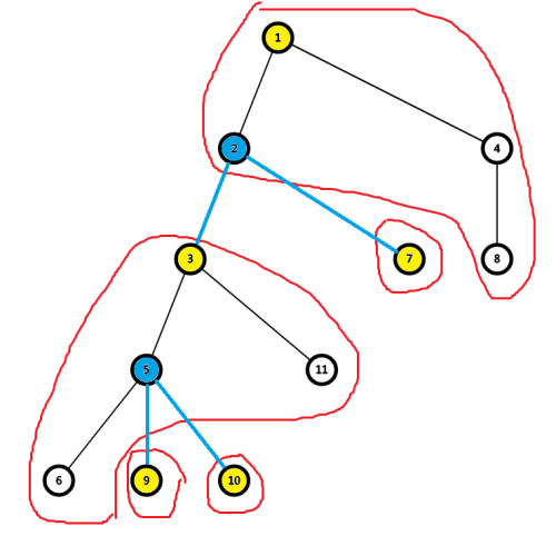 if (f and cnt[bel[f]] < B) bel[u] = bel[f], ++cnt[bel[f]];