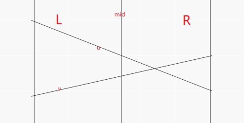 将中点更优的直线记作 \(u\) ,另一条直线记作 \(v\) ,则 \(u\) 应该作为标记保留在当前节点,而 \(v\) 应该将自己下传。