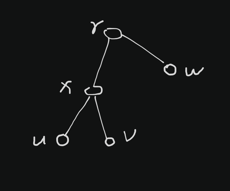 将 \(w\) 向 \((u, v)\) 路径做投影交于点 \(x\) ,\(u, v, w\) 一定位于 \(x\) 的不同子树内且距离 \(x\) 的距离相等。