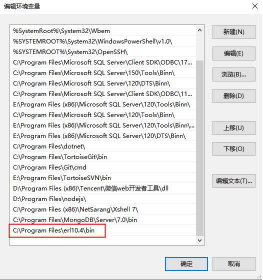 我的电脑>属性>高级系统设置>环境变量,添加安装erlang文件夹位置