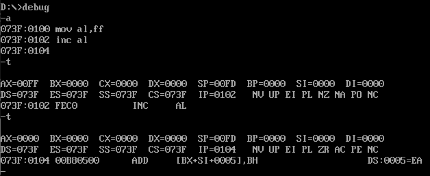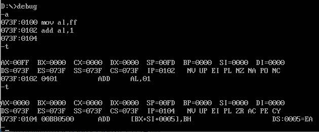 验证性实验:有些汇编指令会影响到标志寄存器中的一个或多个状态标志位。