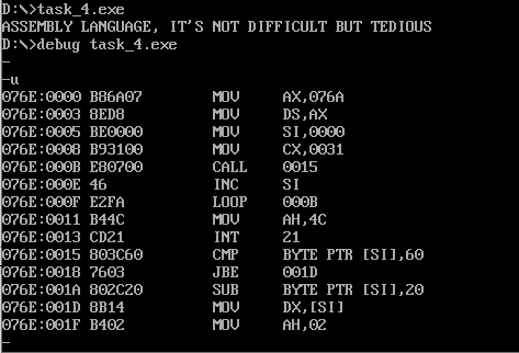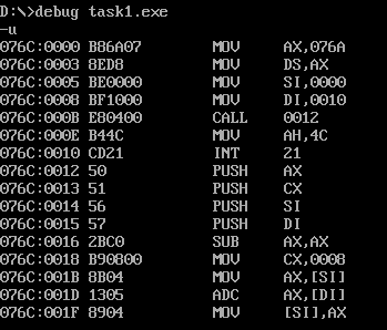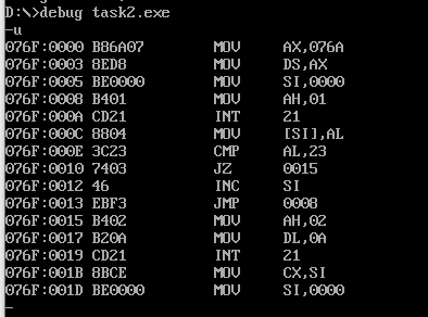 对汇编源程序task6_1.asm进行汇编、链接,得到可执行程序task6_1.exe。运行task6_1.exe,实现将