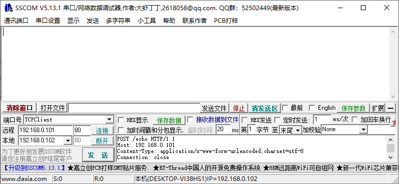 POST /echo HTTP/1.1 Host: 192.168.0.101 Content-Type: application/x-www-form-urlencoded;charset=utf-8 Connection: close Content-Length: 8 12345678