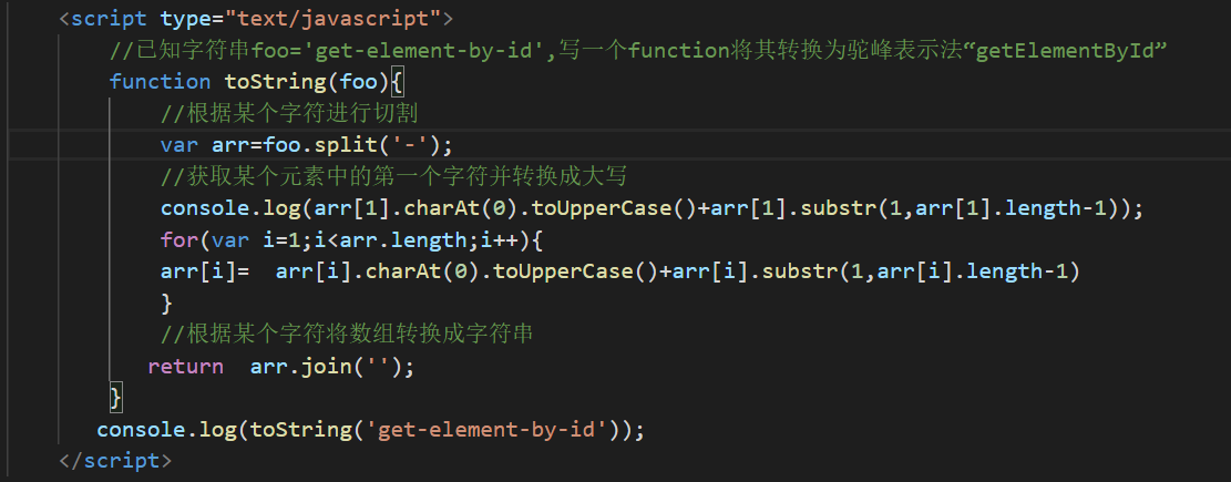 已知字符串foo='get-element-by-id',写一个function将其转换为驼峰表示法“getElementById”