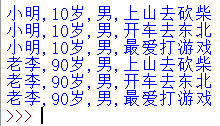 print("%s,%s岁,%s,上山去砍柴" %(self.name, self.age, self.gender))