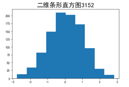 1 import numpy as np 2 x=np.random.randn(1000) 3 plt.hist(x,10) 4 plt.title("二维条形直方图3152",fontsize=20) 5 plt.show()