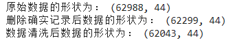 import numpy as np import pandas as pd datafile='D:\Python\数据处理/air_data.csv' cleanedfile='D:\Python\数据处理/data_cleaned.csv' airline_data = pd.read_csv(datafile,encoding = 'utf-8') print('原始数据的形状为:',airline_data.shape) airline_notnull = airline_data.loc[airline_data['SUM_YR_1'].notnull()&airline_data['SUM_YR_2'].notnull(),:] print('删除确实记录后数据的形状为:',airline_notnull.shape) index1 = airline_notnull['SUM_YR_1']!=0 index2 = airline_notnull['SUM_YR_2']!=0 index3 = (airline_notnull['SEG_KM_SUM']>0)&(airline_notnull['avg_discount']!=0) index4 = airline_notnull['AGE']>100 airline = airline_notnull[(index1 | index2)&index3&~index4] print('数据清洗后数据的形状为:',airline.shape) airline.to_csv(cleanedfile)