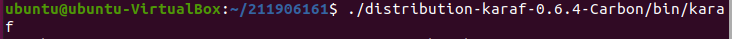 实验环境:运行期间,实验结果一直不成功,运行./distribution-karaf-0.6.4-Carbon/bin/karaf这条代码的时候,出现error,后来经同学提醒可能是实验环境配置有问题,后来又重新装一遍,后来可以成功运行下去。