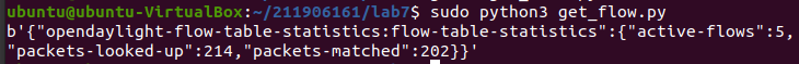 (4) 编写Python程序,调用OpenDaylight的北向接口获取s1上活动的流表数。