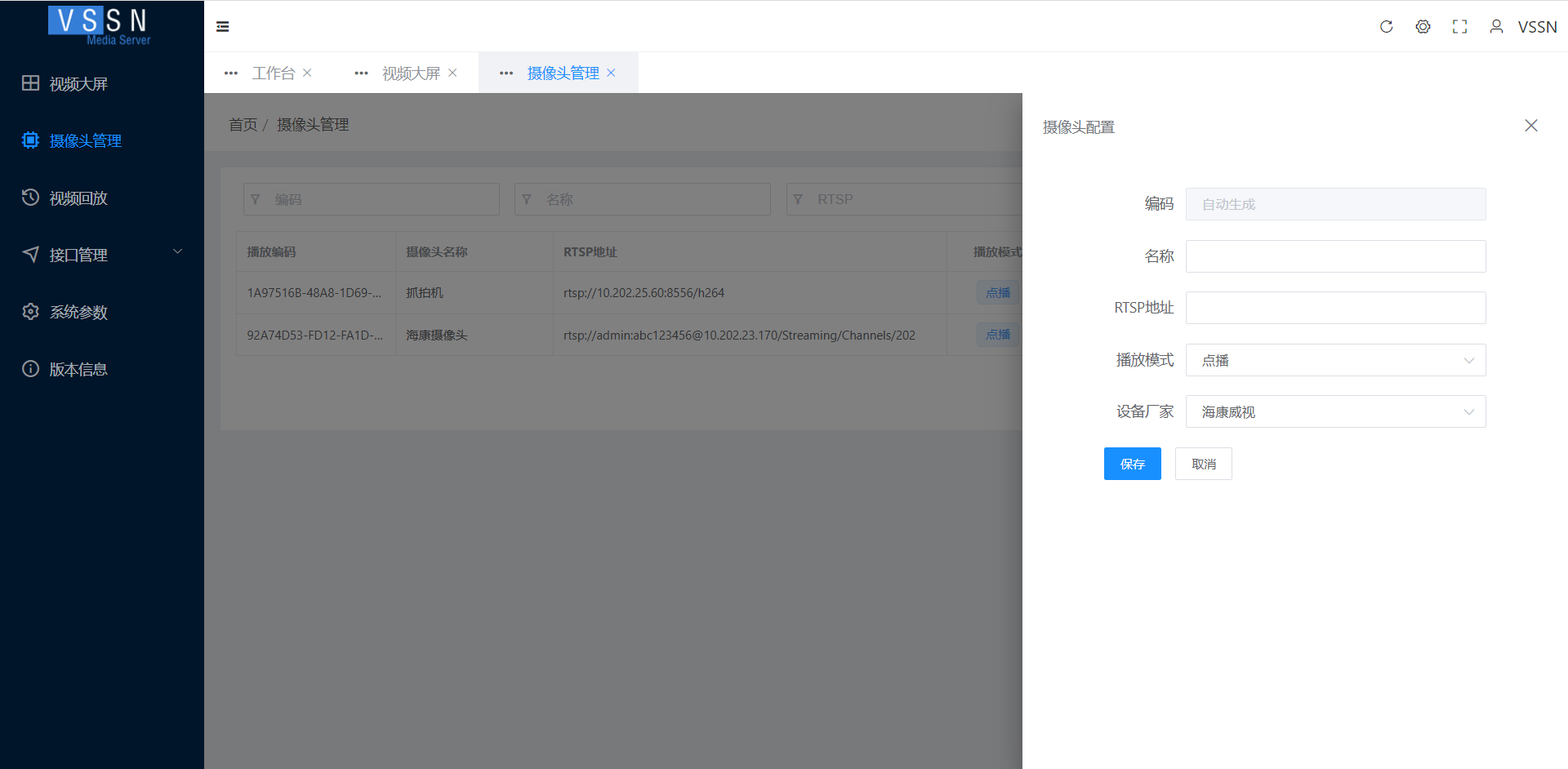 1 { 2 "code": 0, 3 "data": { 4 "Total": 2, 5 "Data": [ 6 { 7 "ID": "1A97516B-48A8-1D69-CAE9-7BEF4E93E036", 8 "Name": "抓拍机", 9 "DevType": "0", 10 "RTSP": "rtsp://10.202.2.60:8556/h264", 11 "PlayType": "1", 12 "UpdateTime": "2021-10-25T13:53:47.6553697+08:00" 13 }, 14 { 15 "ID": "92A74D53-FD12-FA1D-9D99-597681B9CBEC", 16 "Name": "海康摄像头", 17 "DevType": "1", 18 "RTSP": "rtsp://admin:123456@10.202.2.170/Streaming/Channels/202", 19 "PlayType": "1", 20 "UpdateTime": "2021-10-25T13:54:04.8912719+08:00" 21 } 22 ] 23 }, 24 "msg": "获取成功" 25 }
