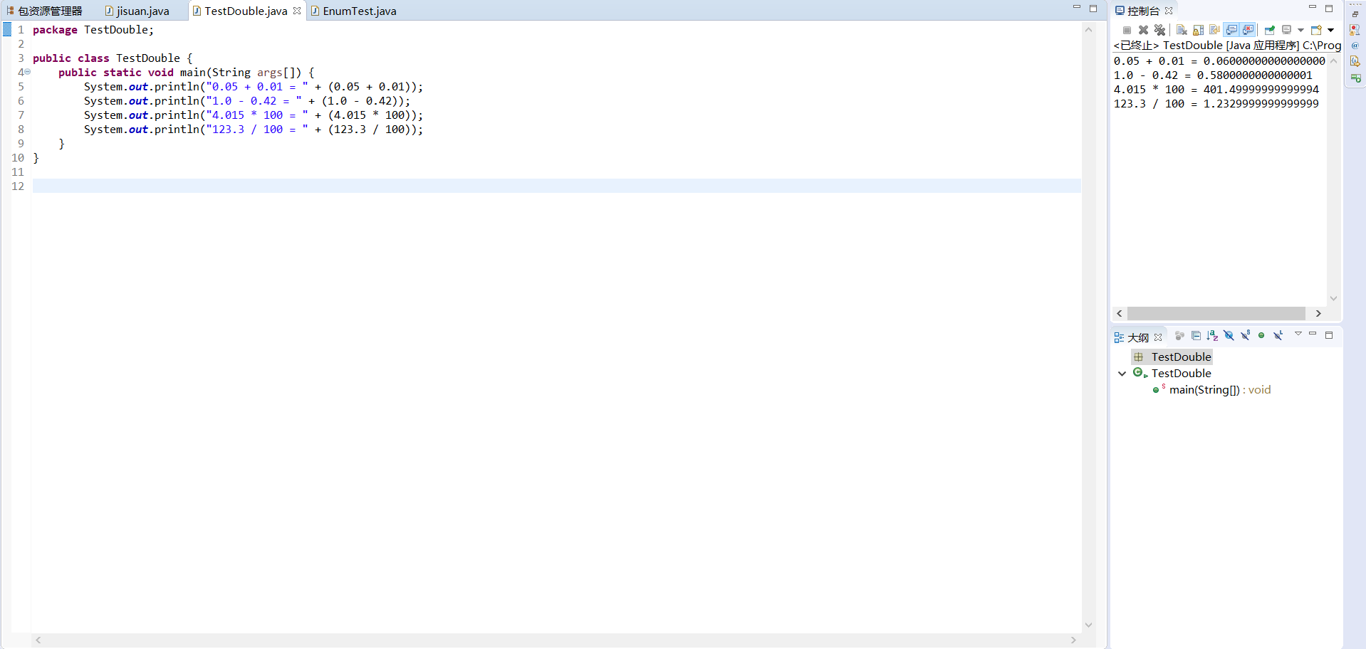 二、TestDouble.java动手实验