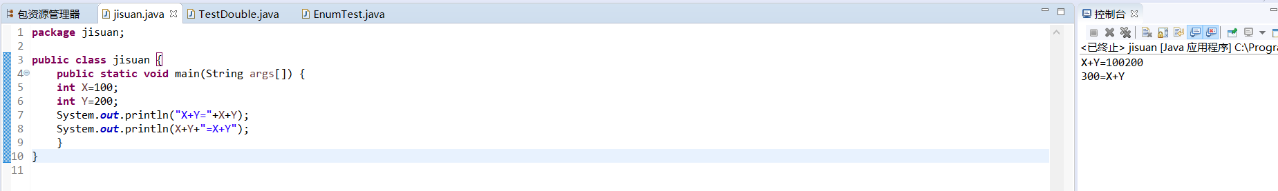 System.out.println("X+Y="+X+Y);