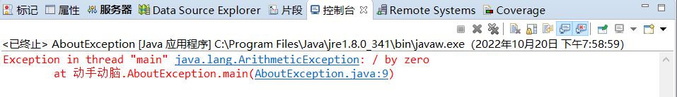(2)Runtime异常:派生自RuntimeException的异常类。使用throw语句可以随时抛出这种异常对象: throw new ArithmeticException(…);