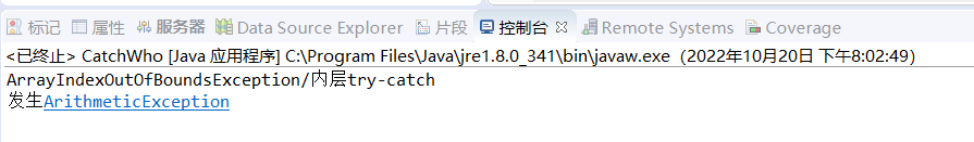 System.out.println( "ArrayIndexOutOfBoundsException" + "/内层try-catch");