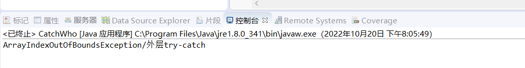 System.out.println( "ArrayIndexOutOfBoundsException" + "/外层try-catch");
