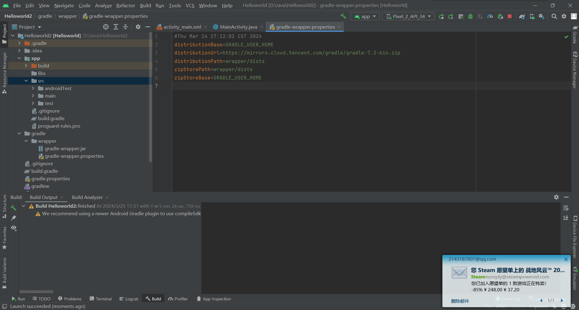 distributionUrl=https://mirrors.cloud.tencent.com/gradle/gradle-7.2-bin.zip改成tx镜像