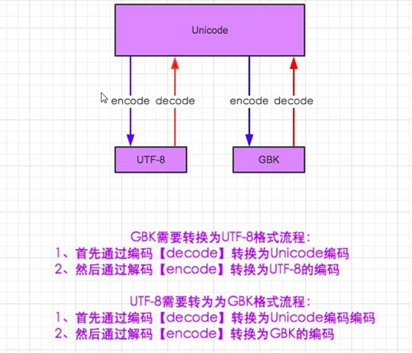 在python3里,encode解码不但转换了数据的编码格式,并且将数据统一转换为bytes类型,decode将数据重新转换为了字符串类型: