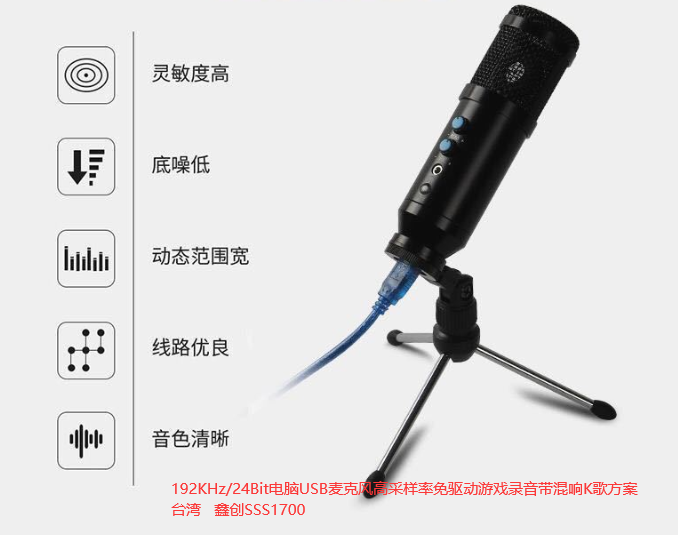 台湾鑫创SSS1700替代Cmedia CM6533 24bit 96KHZ US B音频编解码芯片|SSS1700替代CM6533设计方案
