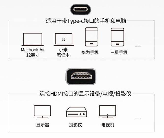 typec转HDMI 转接线Type-C转HDMI 转换 器Type-C拓展坞显示系统,扩展底座其中Type-C显示系统的显示系统如(即显示器、电视、投影仪、标牌或流媒体盒等)
