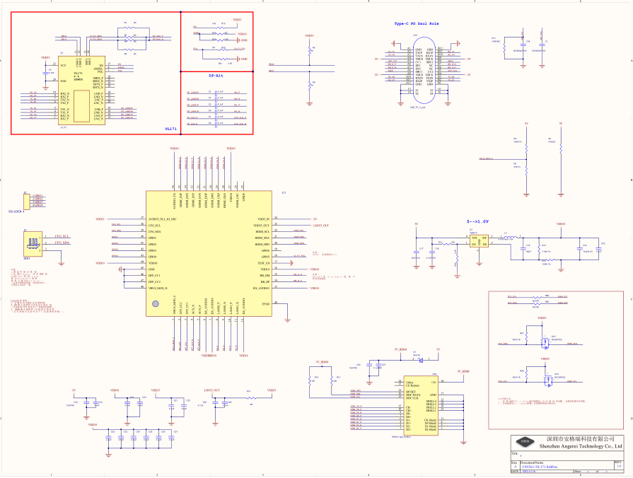 CS5261+VL171支持Type-C母座正反插设计转HDMI电路原理图: