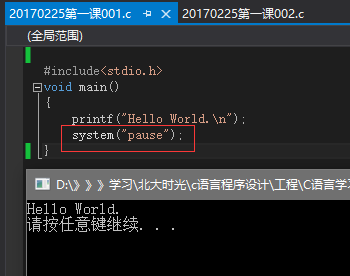如不想每次都选择【调试-开始执行(不调试)】,只要在程序最后加上system("pause"); 编译框便会停留。