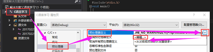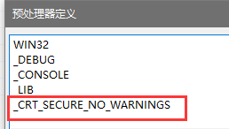 解决方法,项目》属性--》C/C++--》预处理器--》预处理器定义--》下拉-编译--》在最后填入【_CRT_SECURE_NO_WARNINGS】就行了。