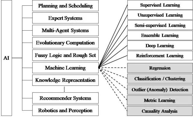 包含“机器学习”和“非机器学习”(如过去的专家系统,通过大量if-else定义规则);