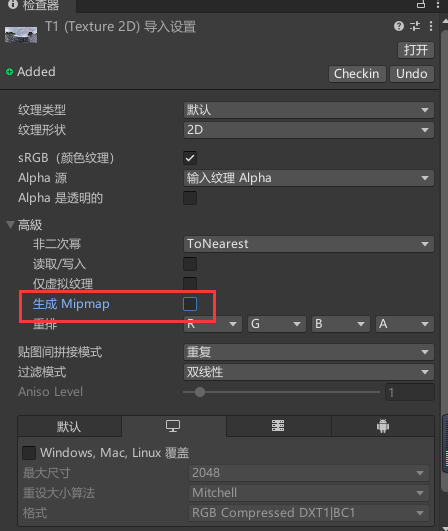 1、导入360全景图,去掉Generate Mip Maps的勾选,防止出现接缝线。