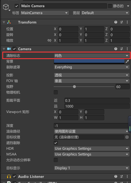 3、Camera的Clear Flags 设置为:Solid Color