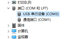 插入ESP32设备后,出现对应的端口(COM),即证明驱动安装成功。如下: