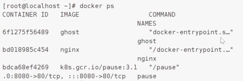 docker run --name ghost --net=container:pause --pid=container:pause -d ghost --ipc=container:pause