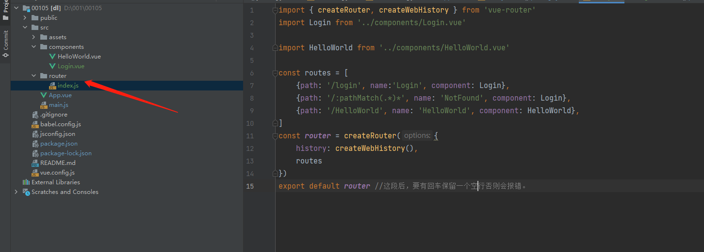 export default router //这段后,要有回车保留一个空行否则会报错。