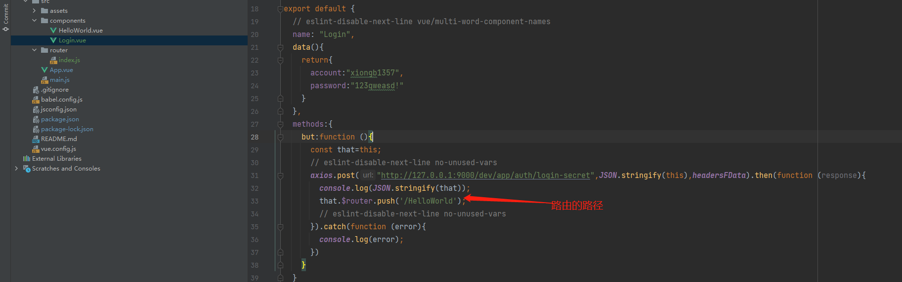 {path: '/HelloWorld', name: 'HelloWorld', component: HelloWorld},