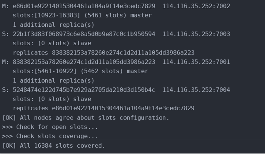 # 输完yes后,会出现如下提示,[OK] All 16384 slots covered.说明成功啦