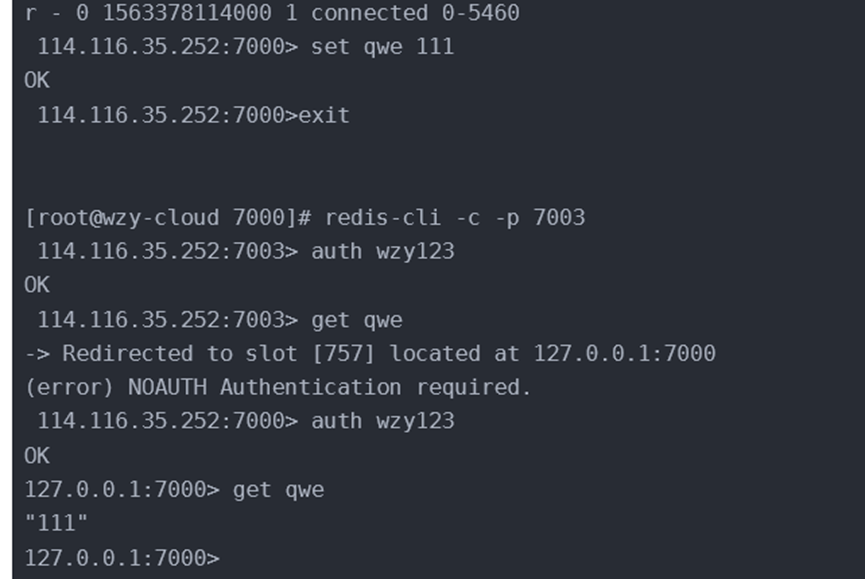 注意:一定要加上-c,不然节点之间是无法自动跳转的!如下图可以看到,存储的数据(key-value)是均匀分配到不同的节点的: