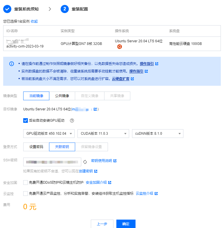 系统用的是ubuntu20.04,买的时候没有20.04,所以我是重装的系统,勾选了GPU驱动。