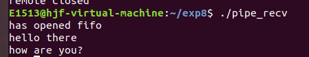输入接收字符,并发送到程序 pipe_recv ,同时 pipe_recv 将接收到的字符打印到屏幕。