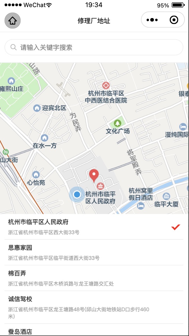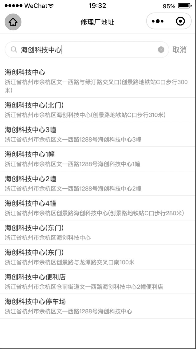 3、点击搜索进入到键盘输入实时获取周边商家的页面