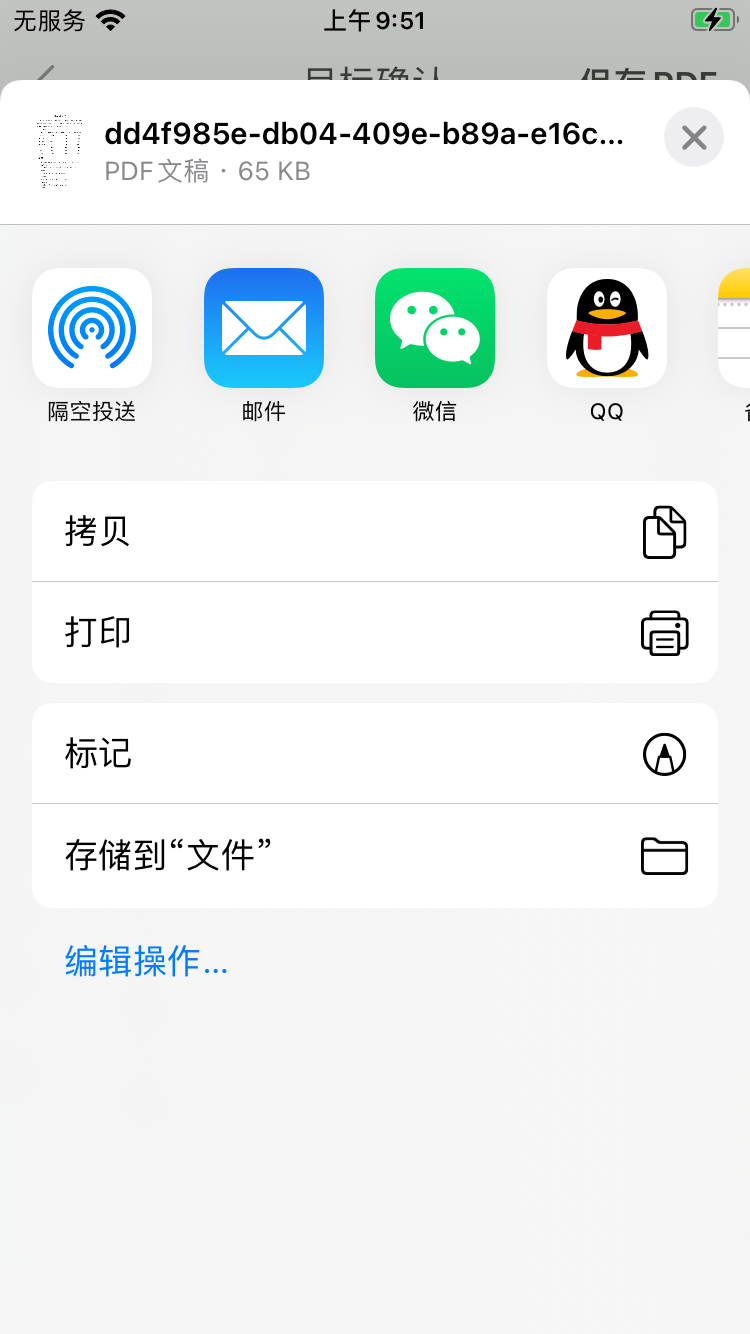 下面是文件分享部分,我们就可以通过UIActivityViewController来实现应用之间文件共享了,大致思路就是发起分享动作时先判断PDF文件是否已经下载到了本地,如果已下载直接发起分享,如果未下载,先下载文件,再分享文件。在分享页面选择分享的途径,如果要分享到“文件”中,选择下面的存储到“文件”按钮,然后选择存储的路径,下次打开“文件”App时,即可看到下载的PDF文件了,以下是代码部分,仅供参考: