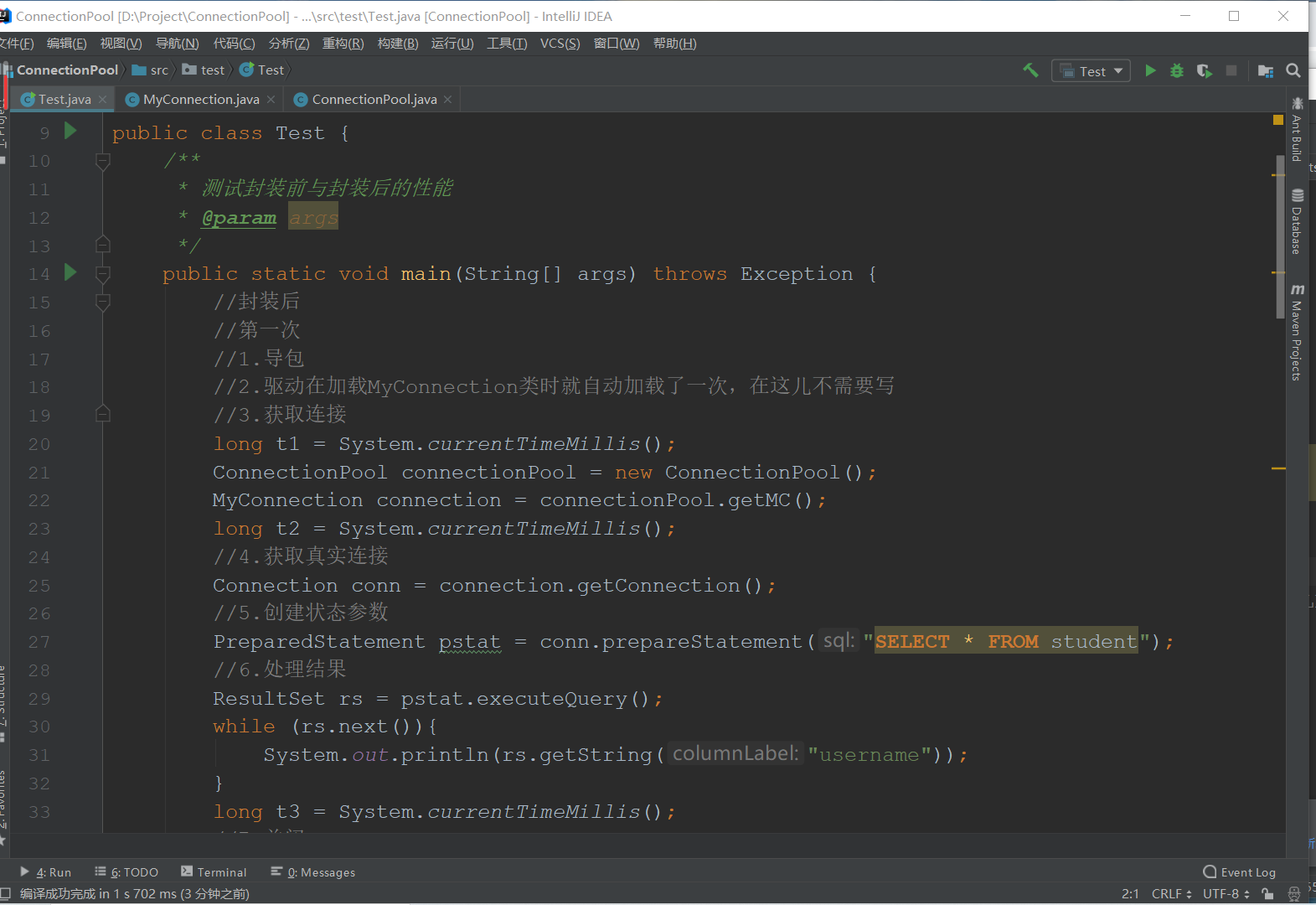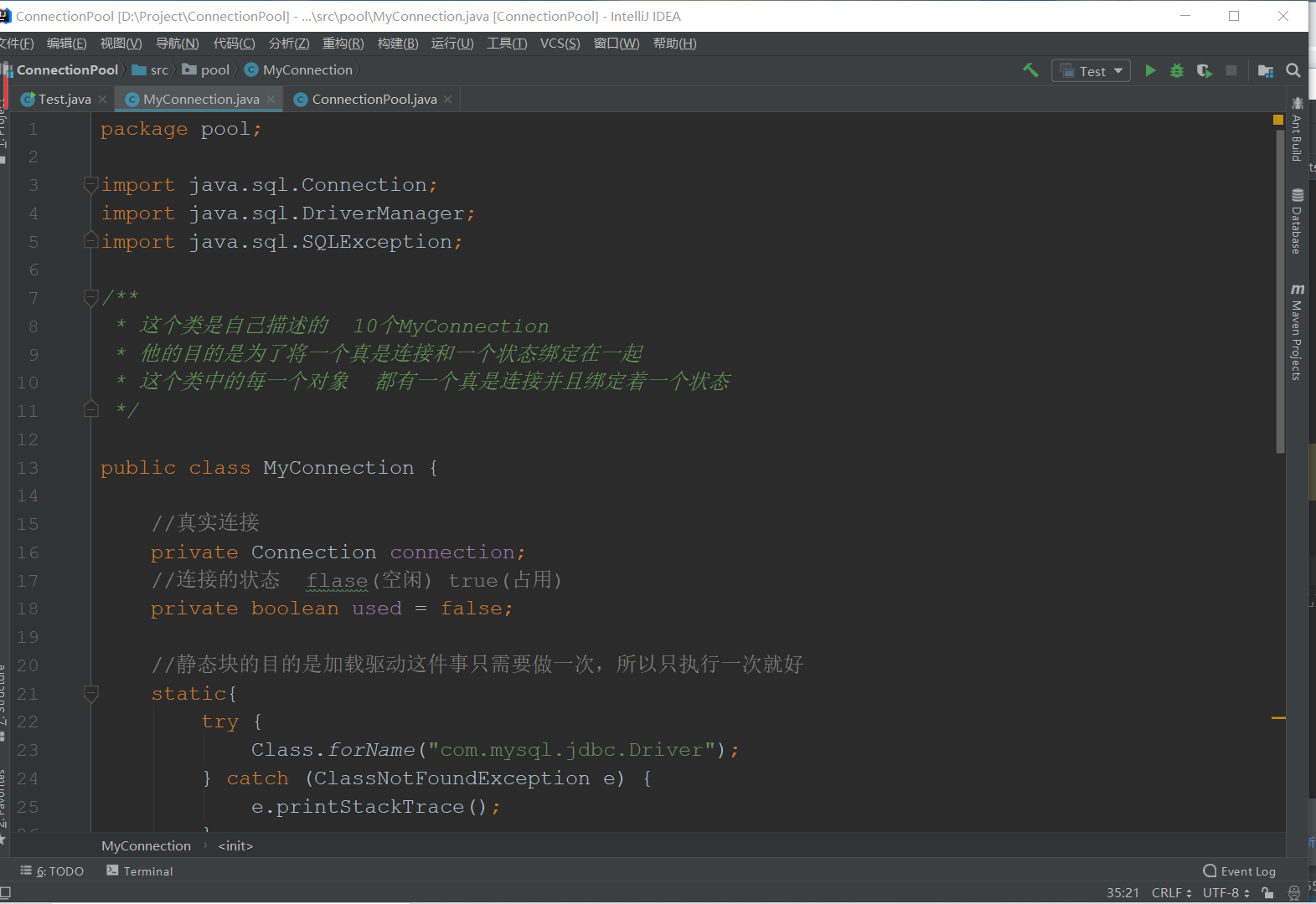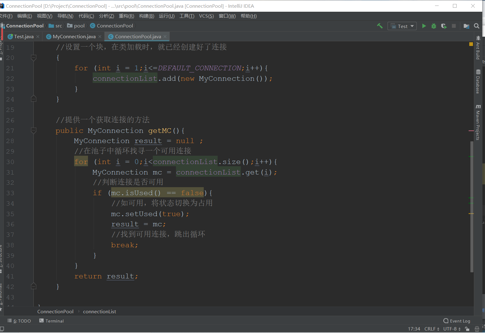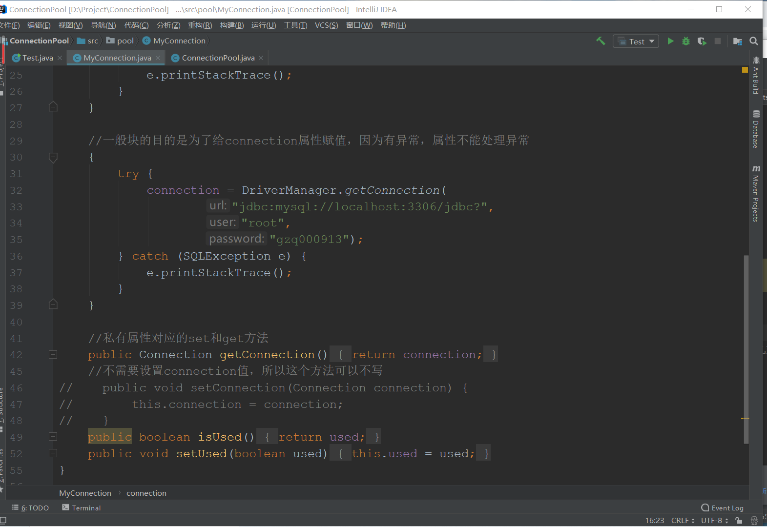 2.还需要一个类ConnectionPool(集合),目的是为了管理好多连接