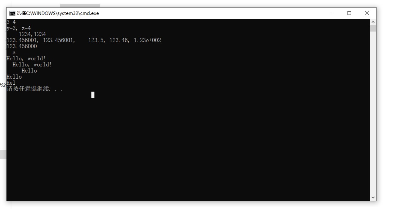 %d的作用为整形输出, %f浮点型输出, %c字符输出, %s字符串输出, %8.1f8位浮点型保留一位小数输出, %.2f保留两位小数输出, %lf长精度浮点型输出, %ld长整型输出