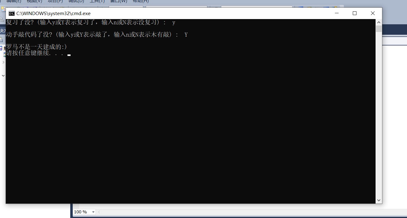 printf("\n罗马不是一天建成的:)\n");
