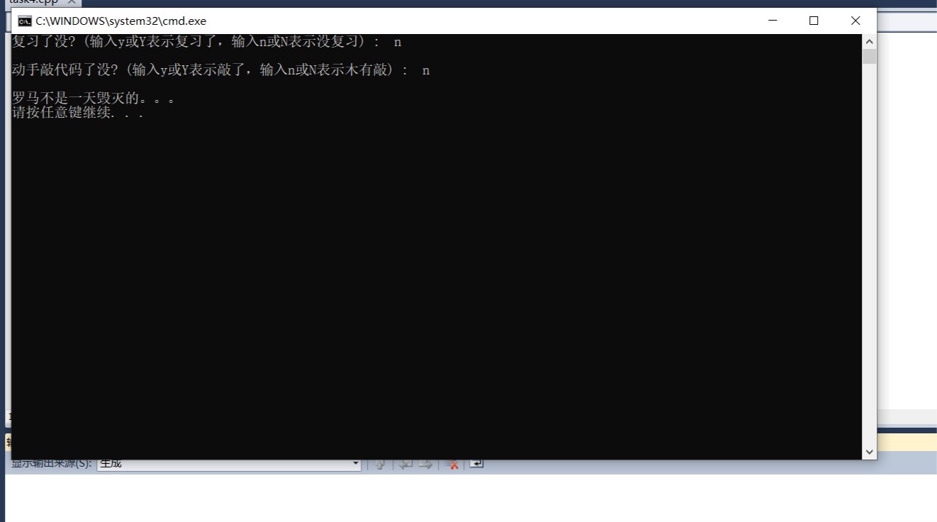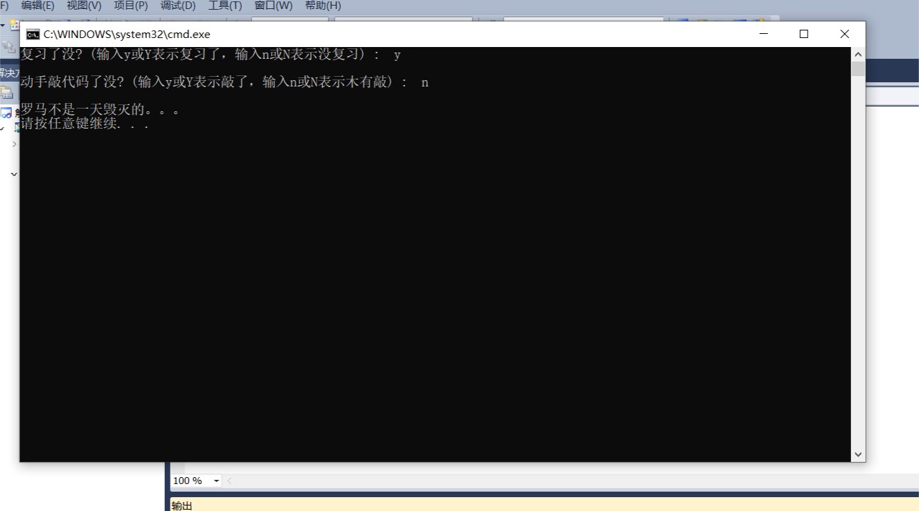 printf("\n罗马不是一天毁灭的。。。\n");