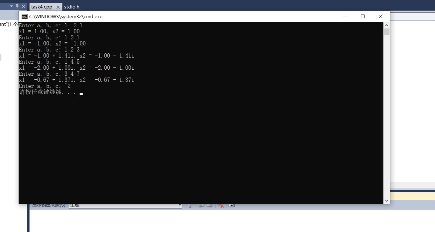 printf("x1 = %.2f + %.2fi, x2 = %.2f - %.2fi\n", real, imag, real, imag);