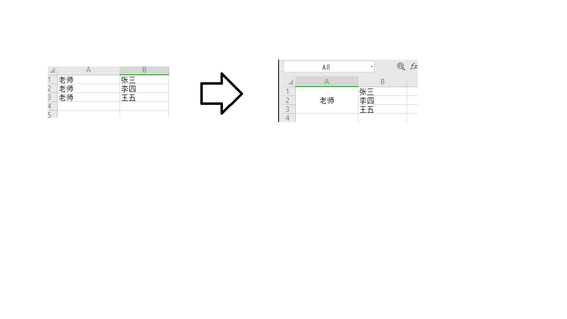 2.遍历结合A,将集合A中的一的一端(上图中老师 )作为key,要合并的单元格作为value,存入map中